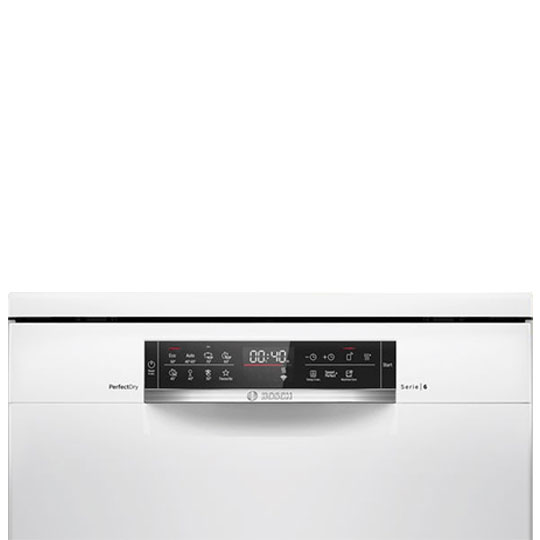 روی بدنه ماشین ظرفشویی این مدل از ماشین ظرفشویی بوش یک نمایشگر زمان و برنامه و دکمه های لمسی و نمایشگر توکار به منظور تعیین و مشاهده برنامههای شستشو و دیگر اطلاعات قرار گرفته است.